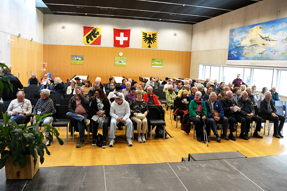 Nach der Ankunft am Militärflugplatz Meiringen-Unterbach wurden wir von Simon Flückiger, Flugplatzkommandant Stellvertreter, empfangen. Anschliessend führte uns Pilot Hampi in einem interessanten Referat durch die Geschichte des Militärflugplatzes und erklärte uns einiges zum F/A-18 und zu den Aufträgen der Swiss Air Force.